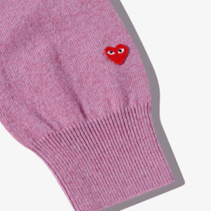 Elevate your casual wardrobe with the Play Comme des Garçons Mini Heart V Neck Sweater Pink, a timeless piece that