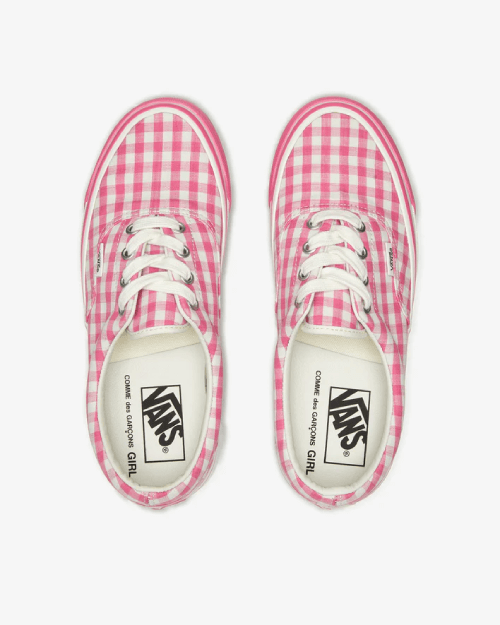 Step into timeless style and unmatched comfort with the CDG Girl Vans Gingham OG Era LX Sneakers Pink. These sneakers are a perfect fusion of Comme des GarΓ§onsβ iconic playful aesthetic and Vansβ classic skate heritage. Designed for those who value both trend and tradition, this pair makes a statement whether youβre strolling through the city, styling a casual outfit, or adding a subtle twist to a chic wardrobe.
