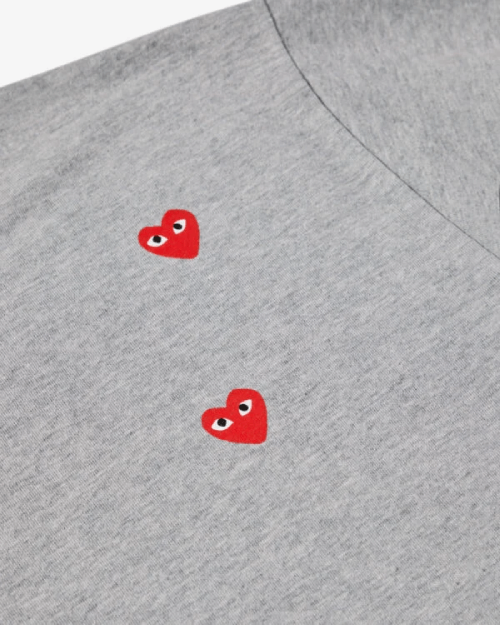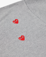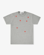 Elevate your casual wardrobe with the CDG Play Multi Red Heart Logo T-Shirt Grey, a perfect blend of comfort, style, and iconic design. This t-shirt from Comme des GarΓ§ons Play is instantly recognizable thanks to its signature multi red heart logo, making it a must-have for fashion enthusiasts who appreciate subtle yet striking designer pieces.