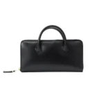 Its exterior boasts smooth, supple black leather that feels luxurious to the touch, complemented by a silver-tone metal zipper that ensures durability and security. The unique built-in handle offers both functionality and style, allowing for an easy grip or a distinctive handheld look. Inside, you’ll find multiple card slots, a bill compartment, and a coin pocket — perfect for organizing your essentials with ease.