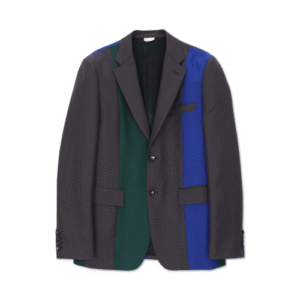 The CDG Brown Multi Panelled Jacket is a unique and stylish outerwear piece that reflects the bold creativity of Comme